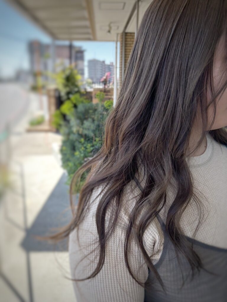 赤みをしっかり抑えながらくすみすぎない絶妙なバランスでナチュラルな印象の仕上がりになります。時間が経って褪色しても綺麗なカラーです🩵
